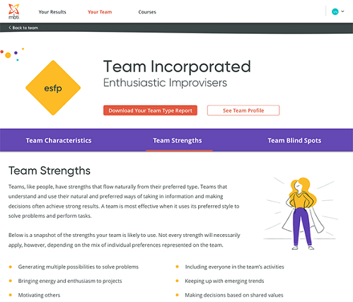 Please note that MBTIonline Teams is intended for team development and should not be used in the hiring of new employees or the selection of individuals to form a team. The MBTI assessment, which forms the backbone of this product, is invaluable for team building, leadership development, conflict management and other uses, but as the assessment is not designed to measure aptitude or performance, it would be unethical to use it to make hiring or personnel decisions.