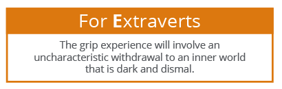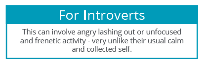 Samengevat, het meest zichtbare kenmerk van extreme stress is dat Extraversion-types erg rustig kunnen worden en Introversion-types boos uit kunnen vallen. Tegelijkertijd verliezen alle Typen onder extreme stress hun gebruikelijk balans tussen informatie opnemen (Perceiving) en beslissingen nemen (Judging) en blijven ze hangen in een functie. Om weer in balans te komen, moeten aan beide aspecten van iemands persoonlijkheid aandacht besteed worden.